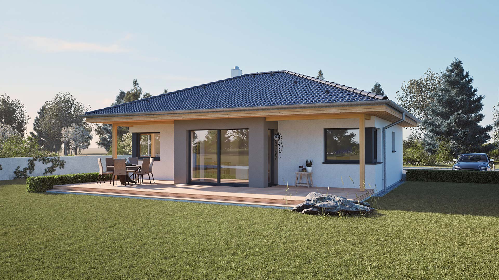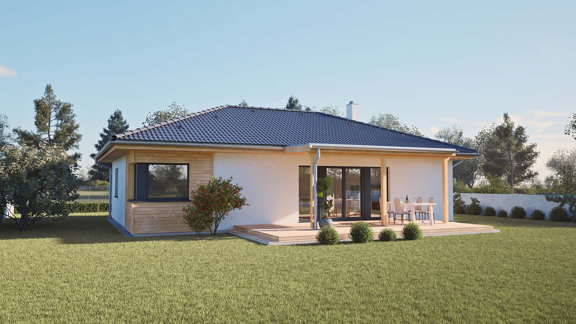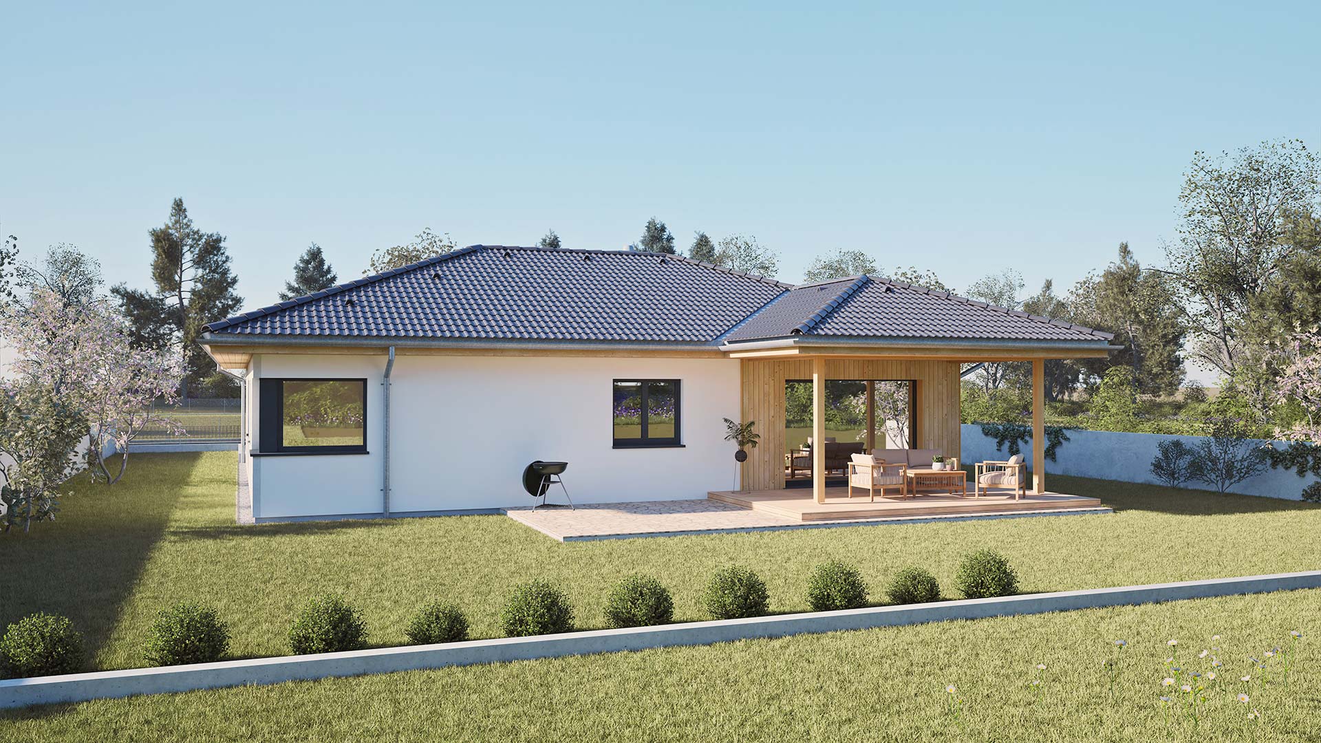 In diesem modernen Walmdach Bungalow lässt es sich entspannt wohnen.