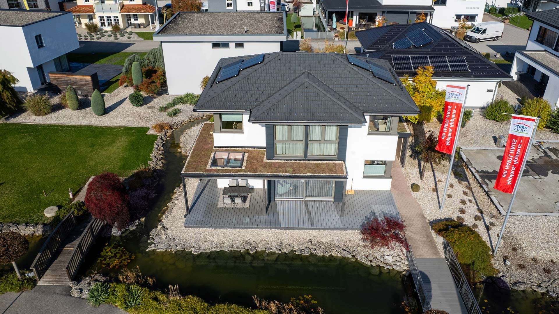 HARTL HAUS präsentiert das modernisierte Musterhaus „Trend 156 W“ im Musterhauspark Haid. Ursprünglich 2015 erbaut, wurde dieses Haus kürzlich im Innenbereich nach den neuesten Wohntrends renoviert. Mit einer großzügigen Nettogrundrissfläche von 156 m2 verbindet es elegantes Design und durchdachte Funktionalität zu einem einzigartigen Wohngefühl.